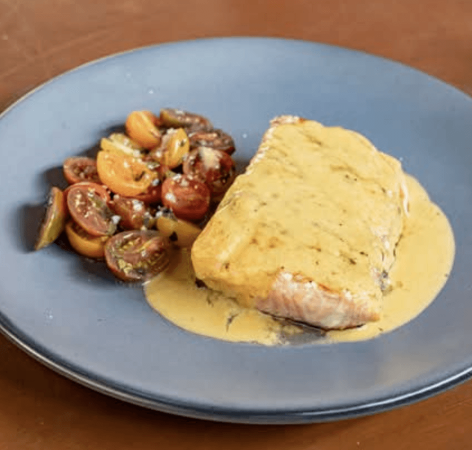 Su salsa de mango hace de este medallón de 280gr. una opción tropical llena de sabrosura. Viene sellado en el asador, bañado en su salsita y acompañado de una ensalada de cherries, albahaca y hierbabuena.